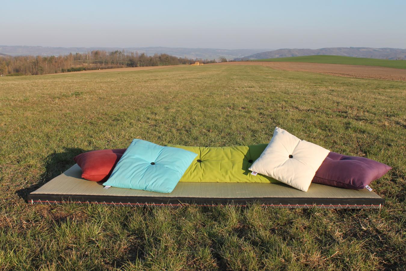 vodoodpudivé futony tu postele a sofa od Karup tu hudobný vankúš tu