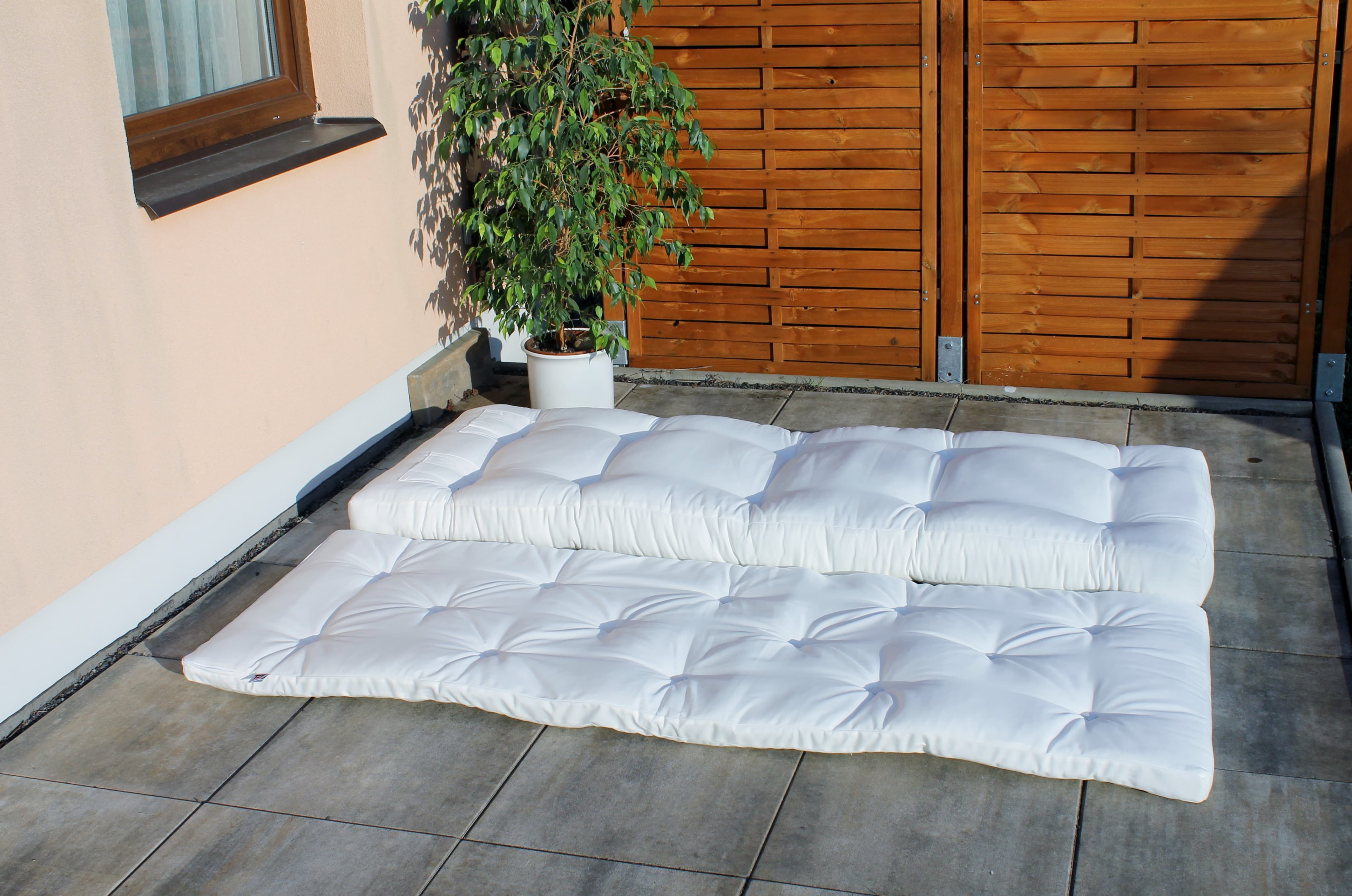 Chcete mať svoj futon nielen v spálni, ale aj inde? Čo napríklad rovno vonku, na záhrade, alebo terase? Máme riešenie. Vodoodpudivý futon môžete použiť ako lehátko, sofa, podsedák na lavicu atď. Vďaka vodoodpudzujúcej látke futonu nevadí ani menší dážď, ranná rosa, alebo trochu snehu. Ale nesmiete to preháňať. Na výber máte z troch farieb látky. Moja obľúbená farba je biela. Ktorá sa páči Vám?