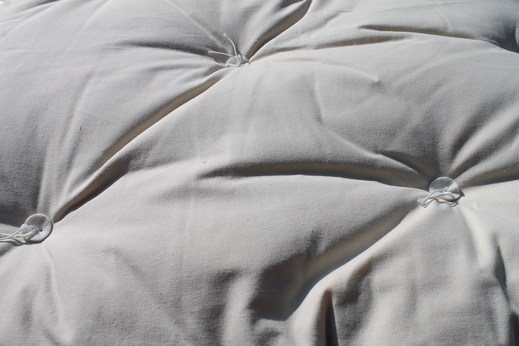 Chráňte futon pred vlhkom, neperte a nenamáčajte! Odporúčam položiť futon na k tomu určený rošt a ak je to možné, nad zem, aby bolo zabezpečené prúdenie vzduchu do tkaniny. Možno použiť aj tatami podložku. Ak teda futon ležia na zemi, pravidelne tento vetrajte a rolujte. Futon môže chytiť povrchovú pleseň už počas týždňa, pokiaľ má na to vhodné podmienky (zmena teplôt, vlhko, chladná podlaha, viróza). Monitorujte teda svoj futon, nech zamedzíte tejto situácii.