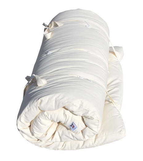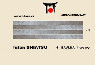 SHIATSU podložka je ľahký a jemný druh futonu, ktorý vedľa terapeutických možností slúži aj ako vhodný základ pre ležanie, posedenie, hranie alebo meditáciu. Naše shiatsu obsahujú 6 cm čistej bavlny.